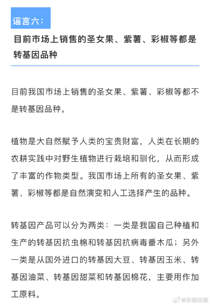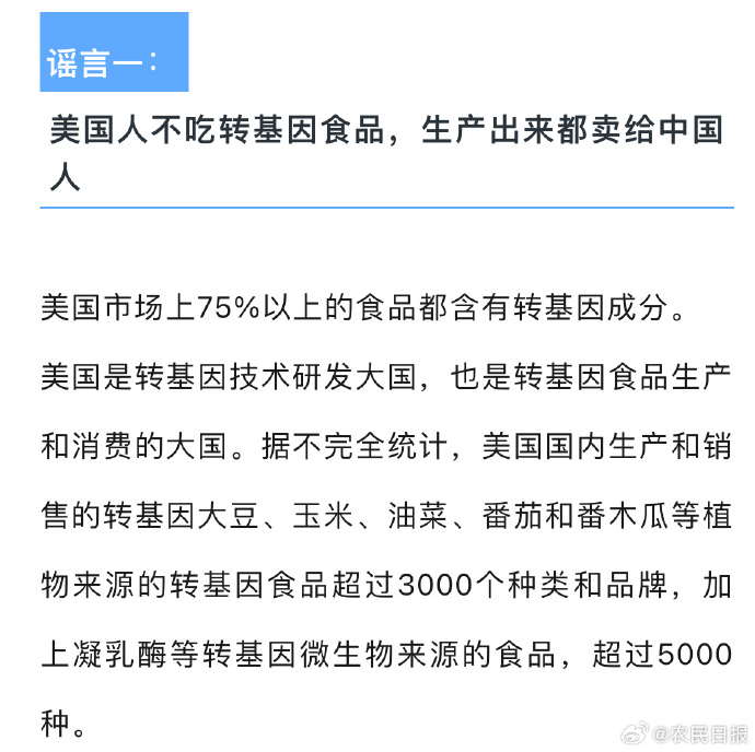 ,頻頻在網絡上傳出“圣女果都是轉基因”“美國人從來不吃轉基因”等虛假消息。這些謠言里你聽過幾個?其實,美國是轉基因食品生產和消費大國,抗蟲轉基因作物對人是無害的。看下圖了解真相。