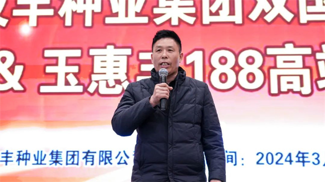 公司區域經理劉煥龍和技豐種業副總經理李繼清分別就集大棒、優質、高抗、高產于一身“雙國審”君育(yu)368、玉(yu)惠豐188品種作詳細(xi)介紹(shao)和優秀表(biao)現分(fen)享。李(li)總并詳細(xi)解讀2024—2025年激勵政策。