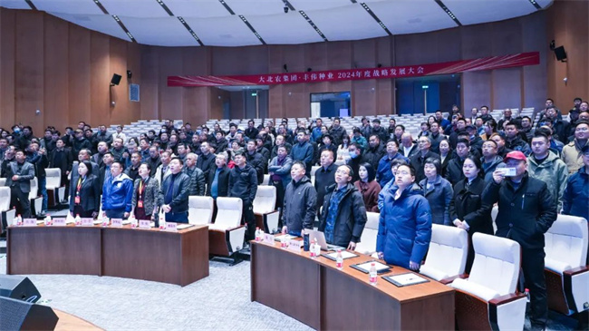 3月11日,農歷二月初二,在“龍抬頭”這一傳統節日,大北農豐偉種業2024年度戰略發展大會在北京大北農鳳凰國際創新園成功舉辦,大北農創種科技常務副總裁李軍民博士,大北農創種科技常務副總裁、豐偉種業董事長王石老師,鄭州偉科作物育種總經理陳堅老師,鄭州偉科作物育種首席育種家田貴軍老師,大北農創種科技人才管理中心總監劉彩霞老師,大北農玉米研究院院長秦琪中老師,大北農豐偉種業總經理肖強老師,種業商務網何澤全老師,大北農豐偉種業法務總監王健老師,大北農豐偉種業營銷總監席鵬飛老師,以及來自河北、山東、河南、安徽等省經銷商伙伴260余人出席會議。會議旨在就當前種業形勢和前景加強探討與交流,進一步拓展合作廣度和深度,共同迎接新機遇,應對新挑戰,攜手并進,共創輝煌!會議在雄壯的國歌聲中拉開帷幕!
