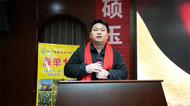 以創新成果的應用價值為導向,聚焦渠道建設,細化重點市場布局,提升公司市場開拓能力,實現全年銷售目標任務。會上,碩玉種業總經理張文明就公司近三年發展戰略和2024—2025年銷售目標進行分享。他說,2024年,公司將充分發揮在育種研發及優良品種方面的突出優勢,精確定位,重點推廣,深化全鏈條式營銷服務,聚焦渠道建設,細化重點市場布局,加大宣傳力度,凝集智慧,腳踏實地,共同發力,不斷拓寬業務廣度和深度,做大做強濮單12,努力實現2024—2025年度300萬畝奮斗目標。最后,張總對經銷商伙伴們提出的濮單12貨源緊缺等問題一一做出回應,并宣講了2024—2025年有關賦能政策,助力經銷商伙伴進一步提高市場競爭力。
