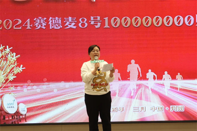 賽德種業營銷總監張春龍公布了2024年賽德麥8號營銷戰略部署和工作落實安排措施;新媒體運營部經理任穎分享了新媒體運營成果以及后續宣傳工作規劃。