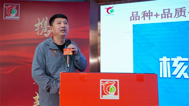 當前,種業形勢變化復雜,行業內卷,如何在激烈競爭中搶占先機?首先,龍耘種業副總賈曉軍從公司的研發、產品、經營渠道、企業品牌等核心優勢做詳細介紹,并對當前種業形勢做深度分析。優異的品種表現,雄厚的實力,健全的渠道體系,有力的政策支持及完善的服務體系,助力各位合作伙伴進一步提高市場競爭力。同時,賈總對公司重點布局及發展策略做了詳細的講解,強調公司的發展一直緊跟國家對種業高質量發展的要求,同時生物技術應用及儲備戰略的構建,為持續性品種選育及換代能力保駕護航。縱然前程有風浪,但只要大家凝心聚力,定可乘風而起,破浪前行。真誠的希望大家可以在種業發展過程中,堅信的選擇龍耘,一條心,一起走!