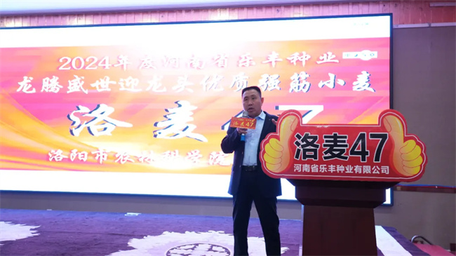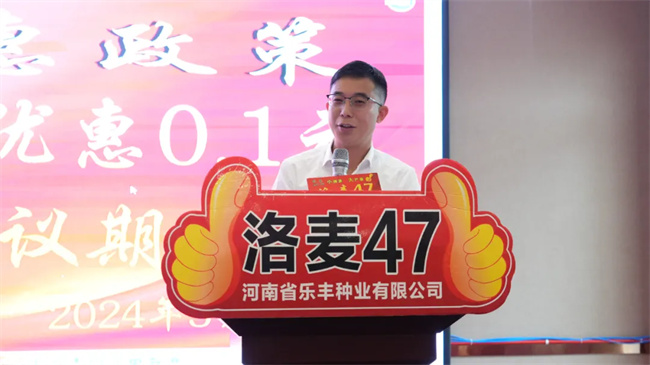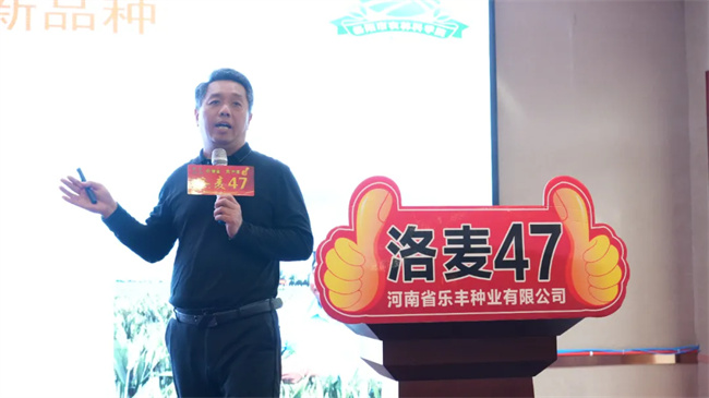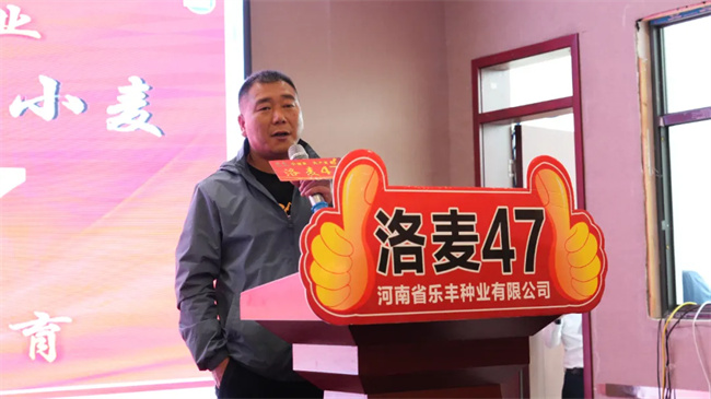 樂豐種業董事長張立旗在致辭中回顧公司發展歷程及取得的優異成績,對各級政府有關部門、專家給予的大力支持和廣大經銷商伙伴的鼎力合作表示衷心感謝。他說,經過16年扎實發展,公司由小變大,由弱變強,已成為業界科研創新意識強、服務意識強、質量意識強的種業公司。公司業績持續提高,種業朋友圈不斷擴大,品牌影響力不斷彰顯,這些成績的取得離不開樂豐種業家人的通力合作。他表示,當前,種業市場面臨前所未有的機遇和挑戰,希望與會嘉賓借助本次洛麥47觀摩品鑒論壇契機,共享智慧,深化合作,互利共贏,創造更加美好未來!