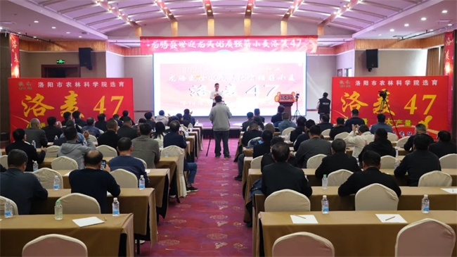洛陽市農林科學院小麥研究所所長、洛麥47的育種家高海濤研究員對優質強筋小麥新品種洛麥47核心育種技術進行詳細介紹,對洛麥47幼苗強壯、抗寒性好、基部節間短、抗倒性好,綜合抗病性強、籽粒黃亮、外觀商品性好、優質強筋、品質穩定、高產穩產等優異性狀和品種特征特性進行分享,與會嘉賓加深了對品種認識和了解,進一步增強了對品種推廣前景的信心。