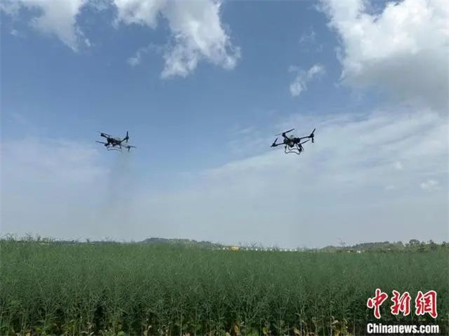 圖為活動現場的植保無人機。羅雅穎 攝