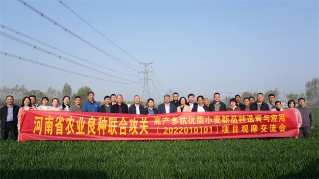 2024年4月8日,由河南秋樂種業科技股份有限公司牽頭,聯合河南省作物分子育種研究院、河南科技學院、漯河市農業科學院、洛陽市農林科學院、南陽市農業科學院、鶴壁市農業科學院和新鄉市金苑邦達富農業科技有限公司共同承擔的河南省農業良種聯合攻關---“高產多抗優質小麥新品種選育與應用”項目2023年度總結暨田間觀摩會在洛陽市農林科學院成功舉行。