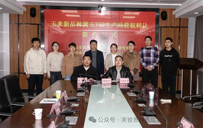 簽約儀式上,河北省農林科學院糧油作物研究所與河南省天中種子有限責任公司簽訂了“冀玉732”玉米新品種經營權轉讓協議,與海南芙銳思植物新品種科技發展有限公司簽訂了冀玉732品種實施許可管理協議。