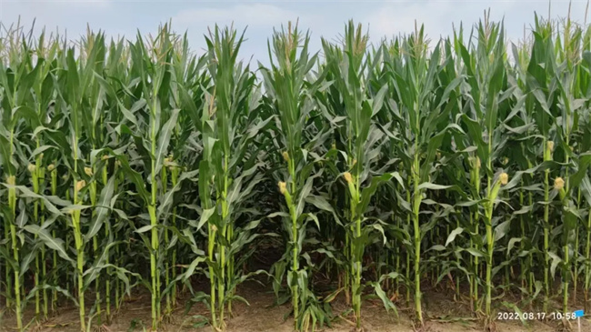 冀玉732是河北省農林科學院糧油作物研究所玉米中心宋煒團隊選育而成,是一個集高產、穩產、抗倒、抗病、適合機械化種植于一身的玉米新品種,成株株型半緊湊,株高274厘米,穗位107厘米。生育期105天左右,千粒重375.5克,出籽率87.4%,在近幾年銹病爆發、高溫熱害等惡劣環境下均能保持高產穩產的優良特性。其突出優點:1、紅軸抗莖腐、穗腐;2、耐高溫、結實好;3、籽大粒深、寬板糧;4、后期籽粒灌漿脫水快、適宜機械化粒收。2022年通過河北省農作物品種審定委員會審定,2023年獲得植物新品種權證書,2023年完成國家黃淮海試驗程序,有望2024年通過國家審定。