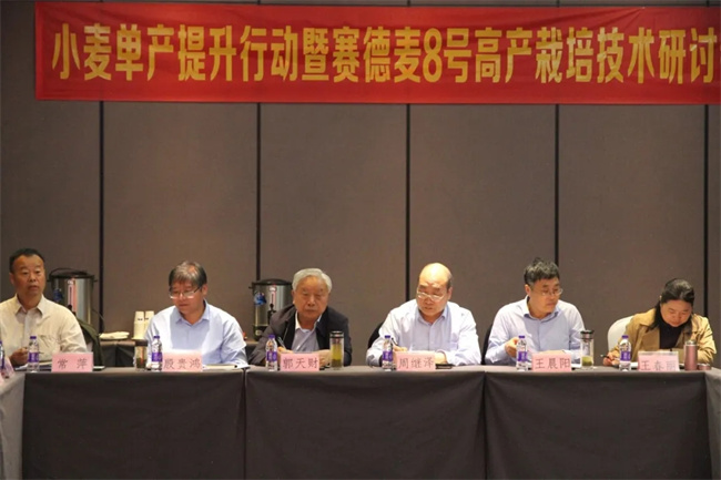 4月20日,由河南省種業發展中心、國家小麥工程技術研究中心、河南農業大學社會服務處主辦,河南賽德種業有限公司承辦的“小麥單產提升行動暨賽德麥8號高產栽培技術研討會”在鄭州市舉行。農業農村部小麥專家指導組顧問、河南農業大學博士生導師郭天財教授,河南省種業發展中心書記周繼澤研究員,農業農村部小麥專家組指導組成員、國家小麥工程技術研究中心副主任王晨陽研究員,國家小麥技術創新中心(籌)執行主任、河南農業大學殷貴鴻教授,河南農業大學社會服務處王春麗副處長,河南省種業發展中心常萍科長以及省轄市、濟源示范區種業發展中心(科)主任(科長)出席會議。