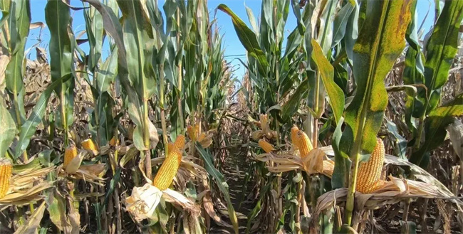 2023 年 9 月來到滎陽豫玉種業基地開始考察玉米。到了地方看見銹病爆發,流行速度快,不抗銹病的玉米大面積枯萎倒伏,對玉米灌漿產生很大影響,直接影響玉米產量。經過 3 天考察了 3000 多個組合,雖然大部分組合不抗銹病,但也有少數幾個高抗銹病的組合表現突出鑒定了出來,我認為大災之年才能選出好的玉米品種。