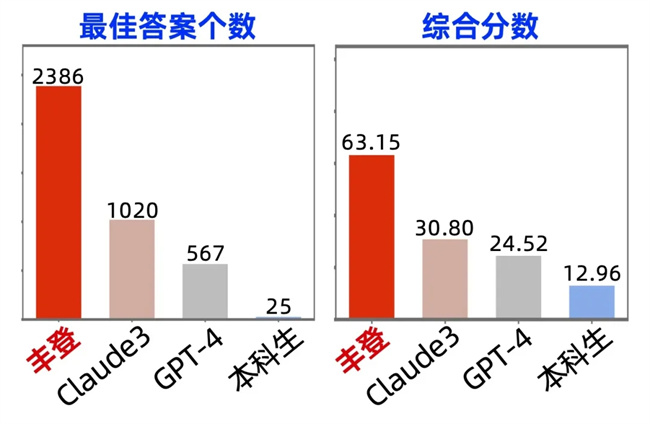 為全面評估“豐登”的專業性能,實驗室精準設計與智造團隊、中國農業大學和上海人工智能實驗室,組織育種專家設計了100道水稻育(yu)種(zhong)專(zhuan)(zhuan)業問題及(ji)對應標(biao)準(zhun)答(da)(da)案(an),涵(han)蓋品(pin)種(zhong)選育(yu)過(guo)程、農藝性狀描述(shu)、栽培技(ji)術推薦和(he)歷史推廣區(qu)域查(cha)詢四(si)大(da)任務(wu)。共計115人參(can)與本次標(biao)準(zhun)測(ce)(ce)評(ping),其中(zhong)包括(kuo)14名(ming)國內水(shui)(shui)稻(dao)(dao)育(yu)種(zhong)專(zhuan)(zhuan)家,49名(ming)農學相關(guan)專(zhuan)(zhuan)業研究生和(he)52名(ming)本科生(大(da)三及(ji)以(yi)上)。評(ping)估團隊通過(guo)排(pai)序(xu)和(he)打分(fen)的(de)方法,對“豐(feng)登”的(de)回答(da)(da)在準(zhun)確性、穩定性和(he)推理能力(li)等方面(mian)進(jin)行了(le)(le)細致評(ping)價。測(ce)(ce)評(ping)中(zhong)還引入了(le)(le)本科生的(de)回答(da)(da)作(zuo)為測(ce)(ce)試基準(zhun)。該測(ce)(ce)評(ping)結(jie)果(guo)表(biao)明(ming),“豐(feng)登”在最(zui)佳(jia)答(da)(da)案(an)個數和(he)綜合分(fen)數上的(de)表(biao)現(xian)均超出預期,且在多(duo)個評(ping)估維(wei)度上超越了(le)(le)語言模(mo)型國際領先水(shui)(shui)平(ping)代表(biao)Anthropic Claude3和(he)OpenAI GPT-4。這些結(jie)果(guo)充分(fen)證明(ming)了(le)(le)“豐(feng)登”種(zhong)業大(da)語言模(mo)型在處(chu)理水(shui)(shui)稻(dao)(dao)育(yu)種(zhong)相關(guan)知識方面(mian)的(de)潛力(li)。