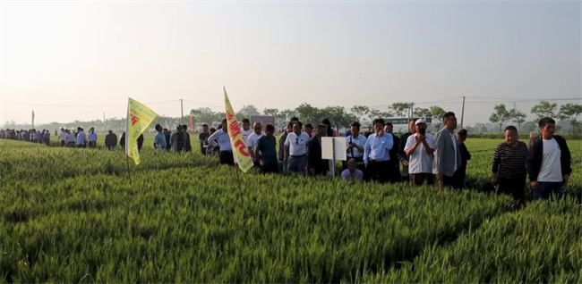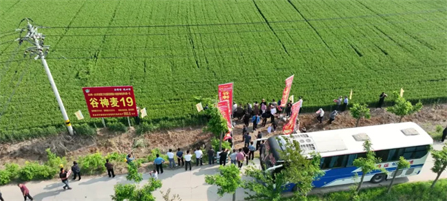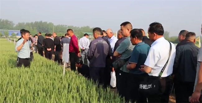 會前,與會代表觀摩了谷神麥19、新麥45及新品種的展示示范田,聽取了技術人員品種特征特性及高產栽培技術介紹,更進一步加深了對谷神麥19、新麥45的認識和了解,以及對公司推出的高產多抗廣適的小麥新品種國禾麥2號、國禾麥3號廣闊市場應用前景的美好憧憬。
