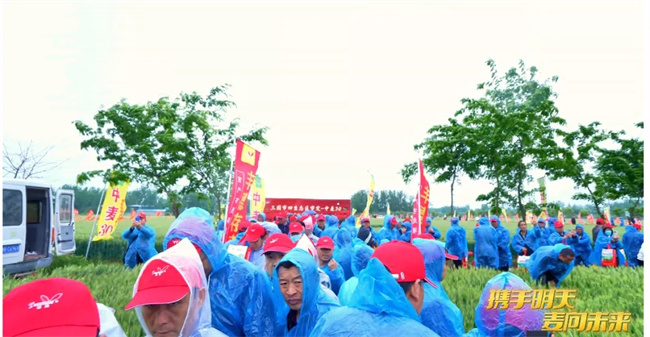 會議當天,雖然刮著大風,下著大雨,也未阻擋住與會嘉賓冒雨觀摩“中麥30”和“豐德存麥23”的熱情。觀摩現場,我國著名的小麥育種家鄭天存研究員和中國農科院作物研究所郝元峰博士分別從小麥優異的農藝性狀重要作用、黃淮小麥品種需要具備的哪些抗逆優勢滿足當前農業生產需要做分享,也為經銷商在選擇要推廣的品種提供很好參考和借鑒。同時,現場的經銷商代表、種地大戶還分享了近幾年推廣和種植“豐德存麥23”、“中麥30”的心得體會,表達了對品種優秀表現的認可和持續做好市場的信心。