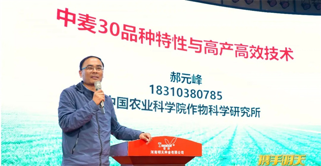 選用高產優質的小麥品種是實現高產的基礎。優良品種具有更好的抗病性、抗逆性和產量潛力。當前,小麥品種特別多,不同的地區有不同的當家品種,因此,在選擇小麥品種時要選擇適應性強,抗凍、抗旱、抗倒伏、抗病蟲害綜合性狀好的小麥品種,選擇這樣的品種是提高小麥產量的前提。會上,鄭天存研究員介紹:豐德存麥23高度聚合周麥27/周麥22雙親綜合優勢,大穗、大粒、群體大,具備產量高、抗倒好、綜合抗病性強、增產潛力大和廣適性強等突出優點,符合當前市場急需,農業生產需要,自推廣應用以來,在各地突出的優秀表現,越來越受到市場歡迎和種植戶喜歡。他說:相信在明天種業的先進的經營理念和創新營銷模式下,“豐德存麥23”市場占有率會逐年提升,競爭力會持續增強,也將為更多的種植戶帶來更大的收益,為農業增產增效做出更大貢獻!