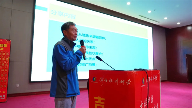 河南省種業發展中心原實驗科科長鄧士政博士就吉興653種質資源背景優勢和利用吉興653親本優勢及育種目標的實現深入淺出的進行了分析,對兼容親本優勢,實現超越突破,從而選育出高產穩產、高抗逆性和廣適性等優勢性狀的吉興653,從育種機理上給予了充分肯定,稱吉興653是努力和機遇兩者結合而誕生的好品種,難能可貴,不可多得。