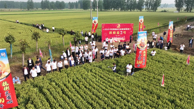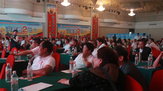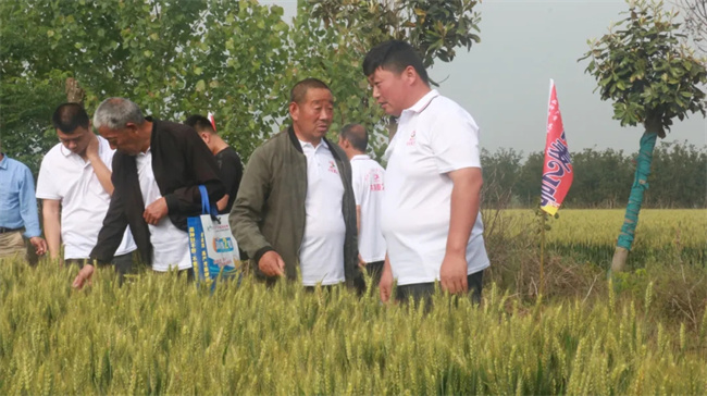 會前,參會嘉賓觀摩了“洪育麥2號”生產大田,察看了當前處于灌漿期“洪育麥2號”整體長勢情況,分享了推廣“洪育麥2號”兩年來的體會心得,對“洪育麥2號”高產穩產和綜合抗性強等優勢表示高度認可,并就如何“上量擴面”的營銷策略和技巧進行交流。