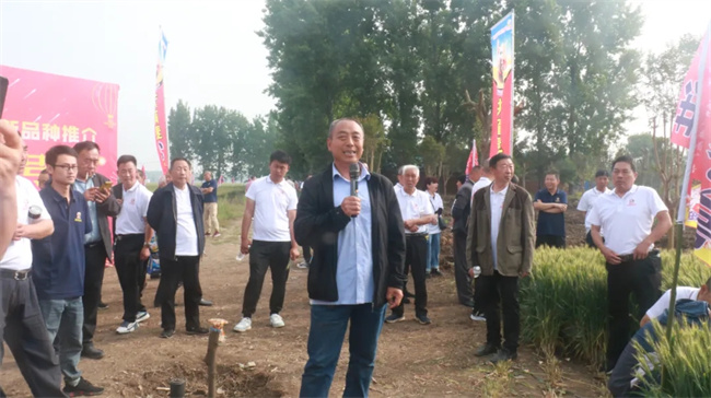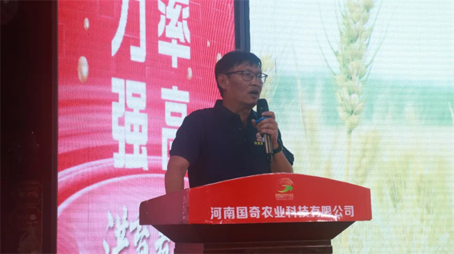室內會上,國奇農業董事長曹新元致歡迎詞。曹總對多年來關心和支持國奇農業高質量發展的各位合作伙伴表示衷心的感謝。他說:希望能夠借此機會,與各位合作伙伴建立更加緊密的關系,通過深入交流和討論,能夠產生更多的創新思路和觀點,共同推動種業事業進步和市場拓展,創造“洪育麥2號”更加美好未來!