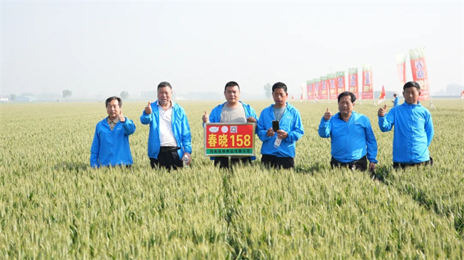 河南省是全國小麥主產區,近年來,河南小麥常常遭受冬季凍害、春季倒春寒及后期干熱風的侵害,同時病蟲害有連年加重的趨勢,受多種因素影響,小麥安全生產面臨諸多挑戰。在此背景下,河南春曉種業依據氣候特點和生產需求,確立了“高產、多抗、廣適”的育種目標,并于2020年成功選育了春曉158。春曉158高度聚合了周麥22/漯6082雙親優點,構建了優異的農藝性狀。在多年多地生產應用中,產量三要素協調、抗病、抗旱、抗倒伏、抗干熱風、商品性好等方面有著良好表現。
