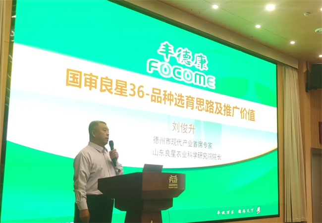 德州市現代產業首席專家、山東良星農業科學研究院院長、良星36的育成人劉俊升以《國審良星36—品種選育思路及推廣價值》為題的專題報告。報告圍繞近年來氣候特點和耕作模式改變,介紹了良星36的選育目標和選育過程。
