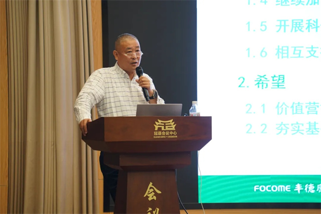 豐德康種業副總經理鄭要華致歡迎詞中介紹了公司發展歷程、科研成果和進展,展望了公司發展規劃,分享了公司布局黃淮麥區北片市場,攜手各合作伙伴共同發展的重要意義。