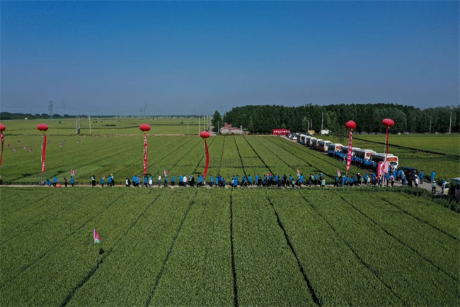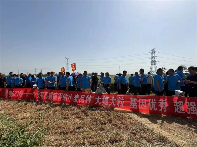 5月12日,河南永研農業科技有限公司以“良種服務農業 價值奉獻社會”為主題的2024全國大型小麥觀摩會在濮陽南樂縣田豐種業繁育基地勝利召開。濮陽市政協副主席、民革黨主席侯圣賢,南樂縣委副書記孫麗君、縣政協副主席胡勝杰等陪同河南農業大學農學院院長王道杰,安陽農科院小麥所所長楊春玲、副所長郜峰,濮陽農科院二級研究員高洪澤等專家到會指導。來自全國各地的經銷商合作伙伴300余人參會。會議旨在通過觀摩品鑒永研農業主推小麥品種濮麥087、安麥10、安麥20、金顆麥11、天麥863的綜合抗性和高產穩產優勢,運用新策略,開拓新路徑,布局重點市場,尋求新突破,實現共同發展。會議旨在通過觀摩品鑒永研農業主推小麥品種濮麥087、安麥10、安麥20、金顆麥11、天麥863的綜合抗性和高產穩產優勢,運用新策略,開拓新路徑,布局重點市場,尋求新突破,實現共同發展。