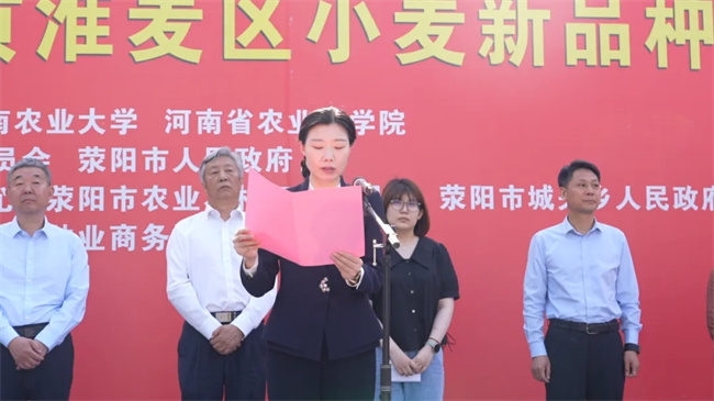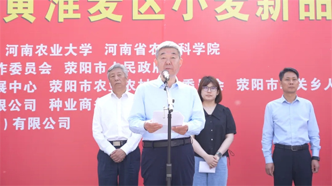 鄭州市人民政府副市長李鳳芝在致辭中說道:近年來,鄭州市依托良好的區位優勢、資源稟賦、產業基礎和發展環境,搶抓機遇,精準定位,大力發展農作物新品種示范展示,著力打造小麥、玉米、蔬菜三個種業的地展品牌,走出了一條具有鄭州特色的現代種業振興發展之路。希望本次展會為廣大經銷商和農民朋友看禾選種,科學用種提供參考,為全國小麥育種成果共享,產學研用,深度融合提供機遇。真誠期待各位領導、專家和同仁多提寶貴意見和建議,深化合作,共創共贏,為我市三個地展注入新動能,為河南種業發展保障國家糧食安全做出新的更大貢獻。