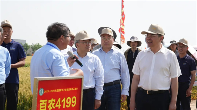 許為鋼院士在致辭中表示,小麥優良品種展示評價和宣傳推介活動,對于引領黃淮海地區乃至全國小麥育種創新,促進小麥產業提質增效以及推進農業高質量發展有著重要意義。下一步,團隊會聚焦種業新質生產力,繼續利用分子育種技術,培育出一批具有高抗赤霉病性能和優良綜合性狀的新種質,提升小麥主產區應對氣象災害和病蟲害的能力,為我國小麥產業的連續豐產豐收提供科技支撐。