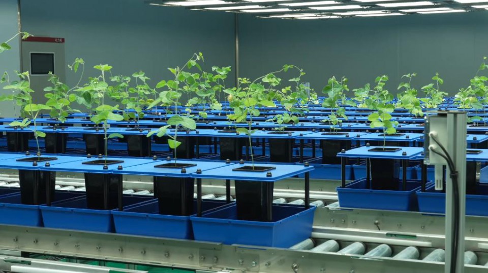 這個育種實驗室被科學家稱為“育種加速器”。實驗室可以模擬大豆生長的特定環境,可將大豆一季生長時間從近六個月縮短至五六十天。科學家把分子設計育種技術和“育種加速器”應用結合起來,大大提高了育種效率。