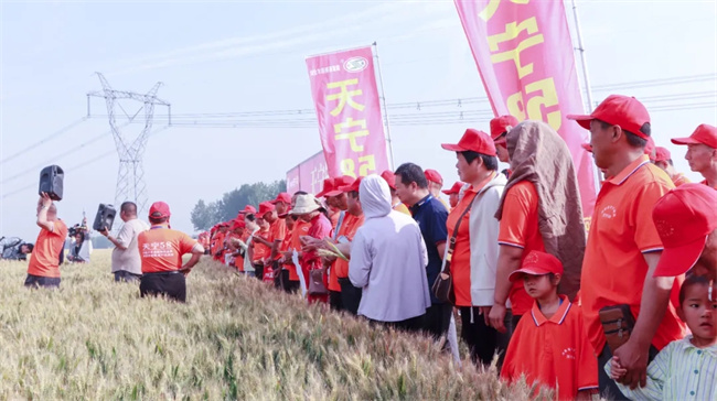 會前,參會人員觀摩了“天寧58”展示田,對豐收在望的“天寧58”優秀表現一致高度評價和認可。同時,他們紛紛表示,將積極落實觀摩測產工作,提高“天寧58”在當地的影響力和市場占有率,讓好的小麥品種惠及到千家萬戶。