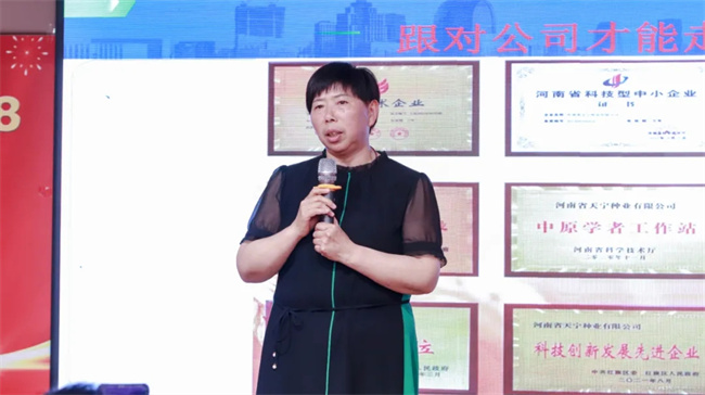會上,天寧種業總經理馬美菊在致辭中介紹了公司在小麥品種研進展和取得的新成果。同時她表示,天寧58是公司針對市場急需,歷經多年精心培育的新一代小麥品種,產量高、強抗倒伏和優質的釀酒品質,市場地位凸顯。下一步,公司將持續聚焦市場、技術體系和渠道,發揮優良品種保障糧食安全和農業增產增效的科技支撐。
