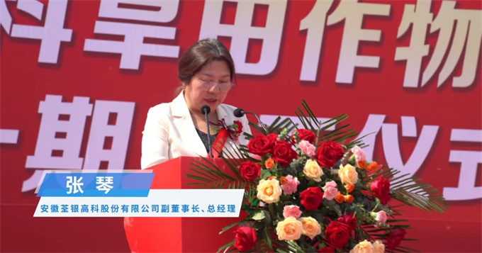 儀式上,荃銀高科集團副董事長、總經理張琴致歡迎詞。她說:種子是農業的“芯片”,是保障國家糧食安全的重要基礎。作為中國種業領軍企業和農業產業化國家重點龍頭企業,荃銀高科集團一直秉承以發展民族種業為使命,堅持科技先行,積極探索農業多元化發展,努力為國家種業振興及農業進步貢獻智慧與力量。同時,她強調,荃銀高科集團將不忘初心、不負厚望,以旱田作物研發中心及皖北研究院為依托,不斷加強科研投入,深化技術創新,積極探索新的種植技術,研發新的品種,努力推動旱田作物領域的科技進步和產業升級,為農業增效、農民增收作出更大的貢獻,為公司在“十四五”期間進入世界種業前十強的戰略目標不懈奮斗!