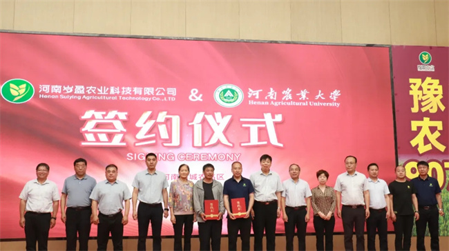 2024年5月21日,河南農業大學與河南歲盈農業科技有限公司合作小麥新品種豫農907簽約儀式在周口國家農高區鄲城縣舉行。國家黃淮南片麥區區試主持人、河南省農科院研究員趙虹,周口市農科院副院長、研究員楊光宇,河南農業大學農學院黨委書記賈磊,國家小麥技術創新中心(籌)執行主任、河南農業大學殷貴鴻教授,河南農業大學農學院副院長李浩賢,河南省種業發展中心品種鑒定科研究員張文玲,商丘市鄉村產業發展中心趙志宏科長,開封市種業發展中心主任郭永濤,周口市種業發展中心主任石東風,濮陽市農業農村發展服務中心副主任李會群,河南歲盈農業科技有限公司總經理李新良等出席會議。