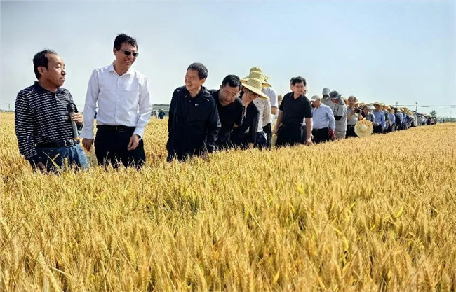 期間,40余家科研院校、種業企業等育種單位代表觀摩了“小麥-冰草”遠緣雜交高產、穩產、強筋新品系(種)90個,其中包括2023年國審新品種“普冰03”和9個正在參加國家區域試驗的新品系,每個新品系(種)田間種植0.5畝,按照株型、穗型、加工品質等分為8大類型。它們有三個共同特點:一是與現在生產上推廣種植的品種間遺傳差異大于60%;二是新品系(種)有 20-40個姊妹系,以便盡可能解決國家區域試驗過程中檢測出的感病以及未來推廣區域的不同要求等問題;三是對每個新品系(種)均進行了重測序,基本明確了其所攜帶的冰草P基因組的遺傳成分。