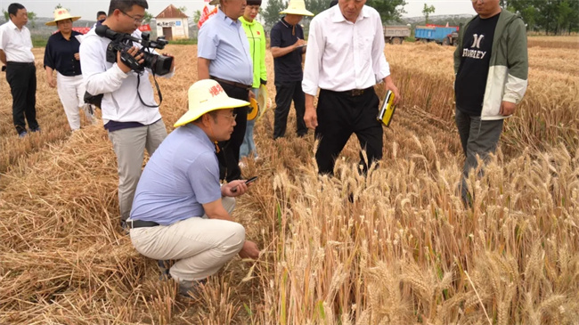 2024年5月29日,豐樂種業邀請河南省種業發展中心書記周繼澤研究員為組長的驗收專家組,對位于河南省社旗縣李店鎮獅子莊種植的雙國審優質小麥品種“煙農1212”進行實打驗收。經專家組測定,該地塊實際平均單產為868公斤/畝!