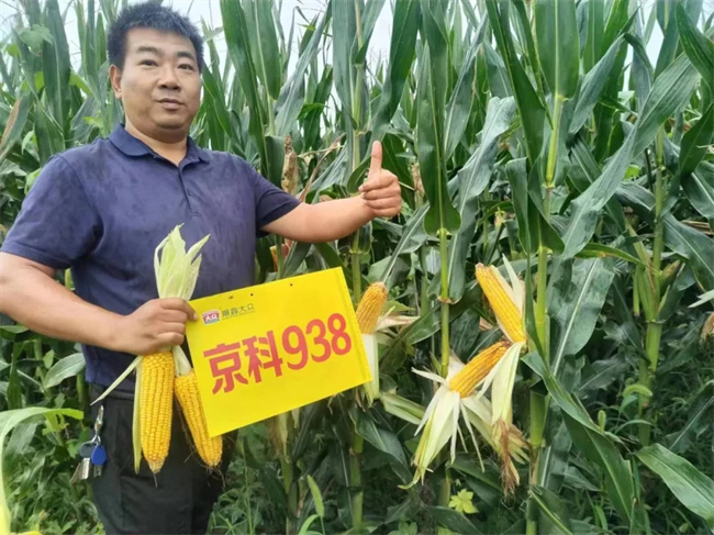 (3)耐高溫熱害、陰雨寡照能力強,結實性好,產量高,2023年10月13日,對商水縣玉米單產提升工程示范區京科938進行現場測產,測得最終產量為1018.6kg/畝!2024年被推薦為河南省主導玉米品種;