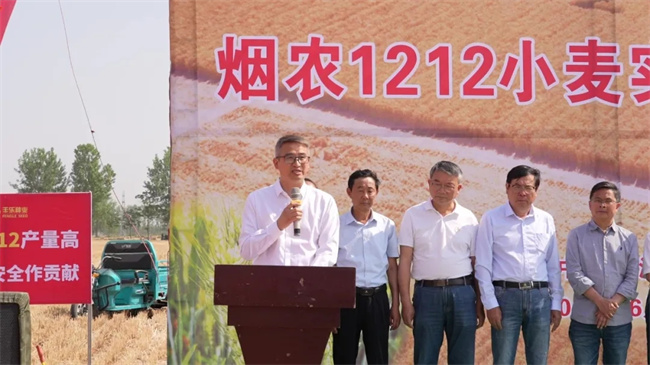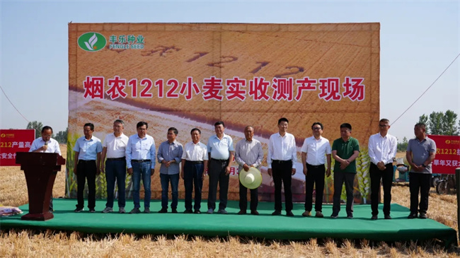 近年來,豐樂種業堅持科技創新與產業創新雙輪驅動,深入拓展創新科技應用場景,持續優化產品矩陣與業務結構,小麥產業煥發出蓬勃發展活力。正如豐樂種業總經理戴登安在講話中所說,豐樂種業長期以來深耕于種子、農藥、肥料等農業產品研發、生產和銷售,矢志不渝地推動農業產業的現代化可持續發展。肩負推動種業科技創新和提升國家農業科技競爭力的重要責任,并為國家糧食生產做出了巨大的貢獻。同時,他表示,希望能以此次測產活動為契機,將優質雙國審品種“煙農1212”推介給更多農戶,穩健推動科技成果轉化為鄉村振興碩果。公司將繼續深入踐行上市央企社會責任與擔當,在“一粒種子上”做大做好文章,始終堅持企業發展同國家種業振興戰略同頻共振,致力讓農戶“收好糧、多收糧、護好倉”,在推進現代農業高效建設新征程中勇當領航者。