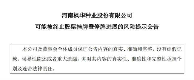 楓華種業:公司股票存在被終止掛牌的風險