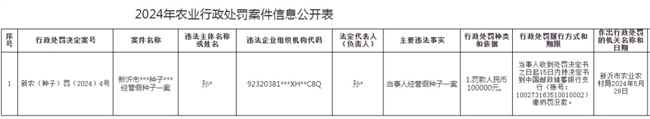 5月31日,新沂市農業農村局發布兩起經營假種子行政處罰案件,兩家農資店分別罰款8萬元、10萬元 :
