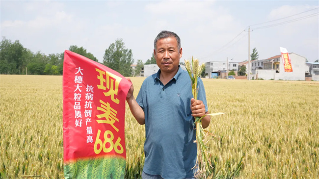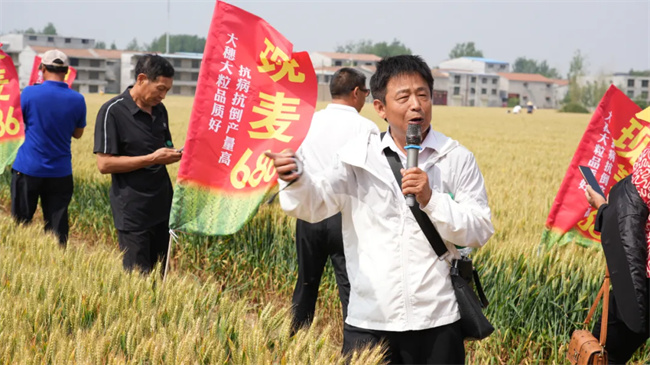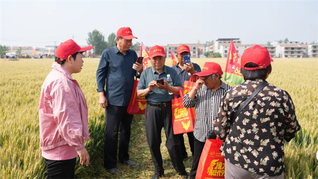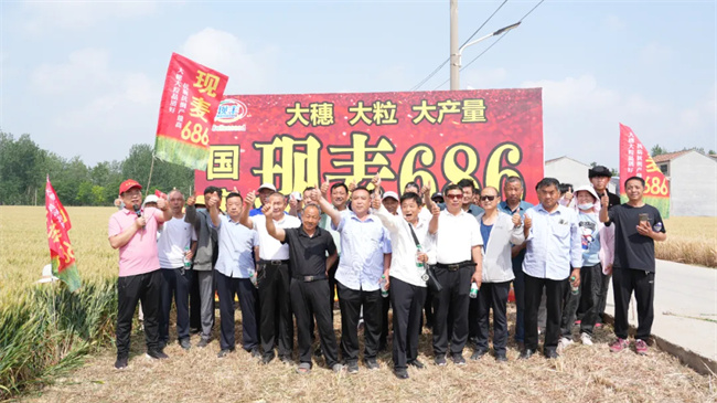 “現麥686”觀摩田塊,一株株微黃的麥穗散發陣陣麥香。觀摩現場,參會人員聽取了技術人員栽培管理和品種特征特性的介紹,查看了品種綜合長勢,并從布點示范種植表現情況、品種宣傳推廣、市場銷售管理等方面作了充分的交流討論,并提出了寶貴的建議。“現麥686”布點示范實際表現出的豐產性、綜合抗病性得到了在場人員一致好評。與會經銷商表示有信心將該品種推向市場,實現大賣。