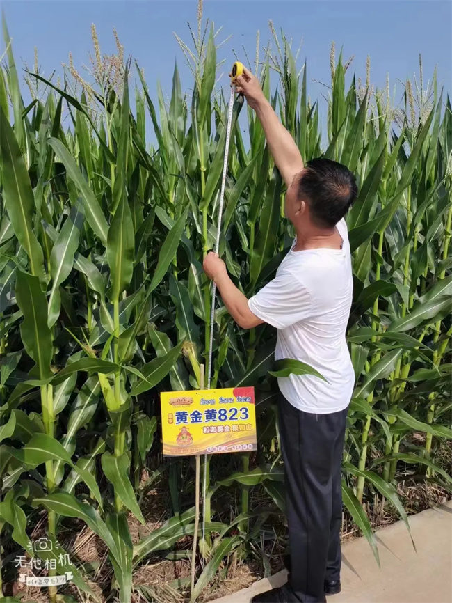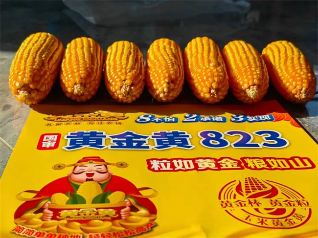 (2)穗粗穗勻結實好。穗行數18-22行,穗軸紅色,百粒重31.2克。在近年來的高溫熱害、陰雨寡照等惡劣災害氣候,黃金黃禹堃823多年多地表現出良好的結實性,籽粒飽滿,色澤鮮亮。