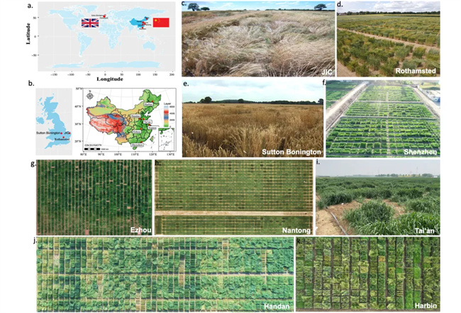 圖3 | Watkins小麥在中國南北6個生態區及英國3個生態區種植并進行系統的表型鑒定
