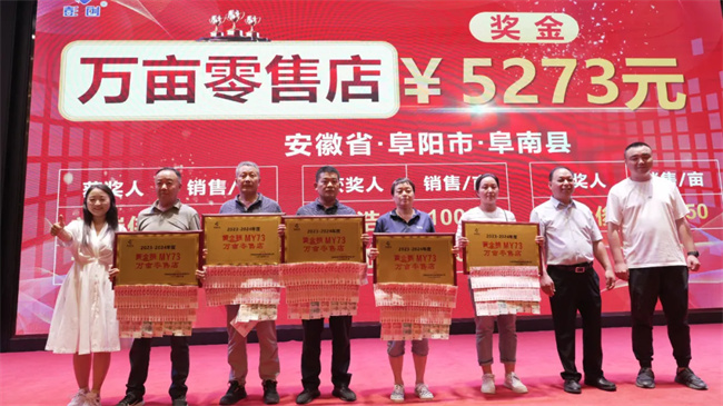 2023—2024銷售年度,是黃金糧MY73成績卓越的一年,在突破3000萬畝耀眼銷售目標的背后,離不開廣大經銷商鼎力支持和付出,為表彰先進、鼓舞人心、激勵斗志,會前,公司特設萬畝零售店獎、三萬畝零售店獎、黃金成就獎、璀璨金鉆獎、榮耀金冠獎、王者無疆獎等獎項,對成績突出的優秀經銷商代表進行表彰,共同見證屬于MY73團隊的榮耀時刻。這份榮譽既是財富與榮耀的傳承,更是責任、精神和價值觀的傳承。獲獎者們在鮮花和掌聲中接受MY73家人的祝福,同時激勵著其他伙伴見賢思齊,在未來的七彩人生路上“億”起拼搏,再創輝煌。