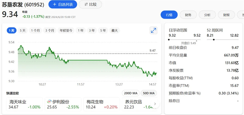 3、蘇墾農發[601952]江蘇省農墾農業發展有限公司2017年5月在上海證券交易所上市,目前市值131.60億元。公司涉及業務廣泛,旗下大華種業是核心種業板塊。大華種業常年生產銷售各類農作物種子超過35萬噸,營業收入保持在13億元以上,產銷量和產值居全國前列。