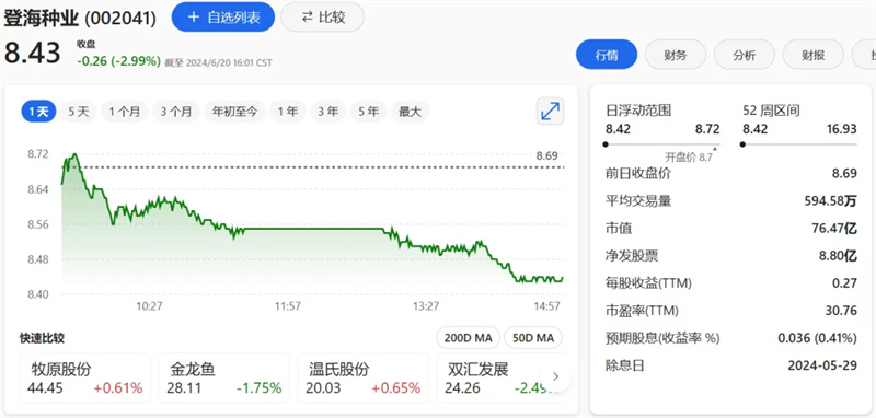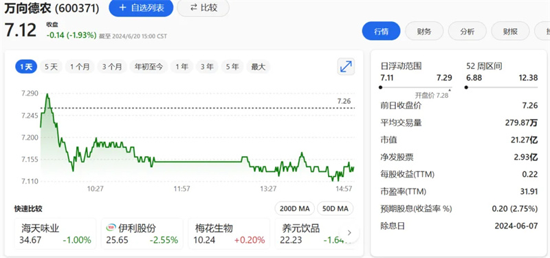8、豐樂種業[000713]合肥豐樂種業股份有限公司1997年4月在深圳證券交易所上市,是“中國種業第一股”,目前市值35.67億元。公司業務以種業和農化為主導。