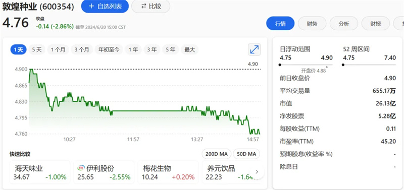 9、敦煌種業[600354]甘肅省敦煌種業集團股份有限公司2004年1月在上海證券交易所上市,目前市值26.13億元。種業是公司主營板塊,近兩年食品、棉花等板塊營收占比有所下降。