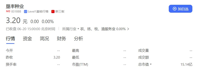 14、墾豐種業[831888]北大荒墾豐種業股份有限公司2015年1月在新三板掛牌,目前市值15.14億元。