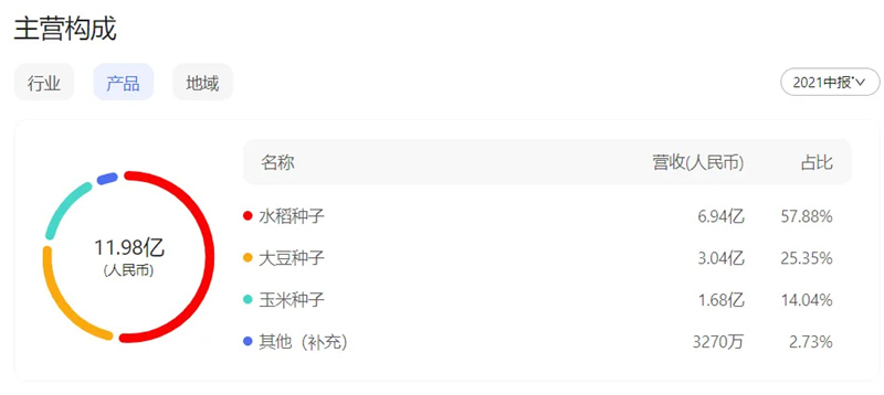 北京大北農科技集團股份有限公司2010年在深圳證券交易所上市,目前市值171.48億元。公司產業布局涵蓋飼料動保科技產業、養豬科技產業、作物科技產業、農業互聯網多個領域,種業板塊營收占比不大,但是核心業務之一。