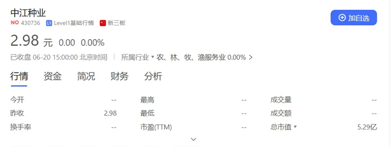17、中江種業[430736]江蘇中江種業股份有限公司2014年5月在新三板掛牌,目前市值5.29億元。是一家集種子、種苗科研、生產、加工、銷售為一體的現代農業企業,主要經營水稻、玉米、小麥、油菜、瓜菜等各類農作物種子及園林綠化工程業務。