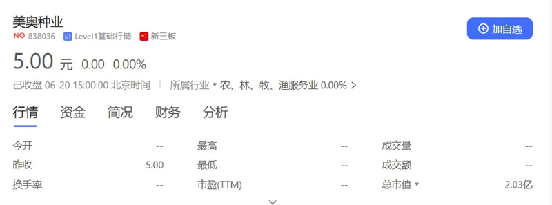 20、美奧種業[838036]浙江美之奧種業股份有限公司2016年8月在新三板上市,目前市值2.03億元。主營業務是瓜菜種子的研發、生產和銷售業務。