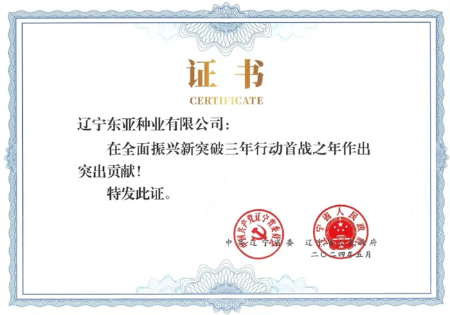 遼寧省委省政府通報表彰東亞種業,在全面振興新突破中作出突出貢獻。